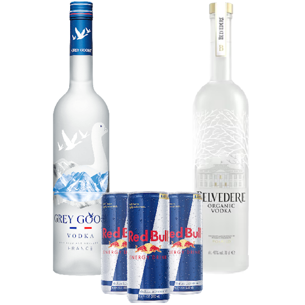| 1 Flasche Grey Goose oder Belvedere & 6 Red Bull Energy Drinks |